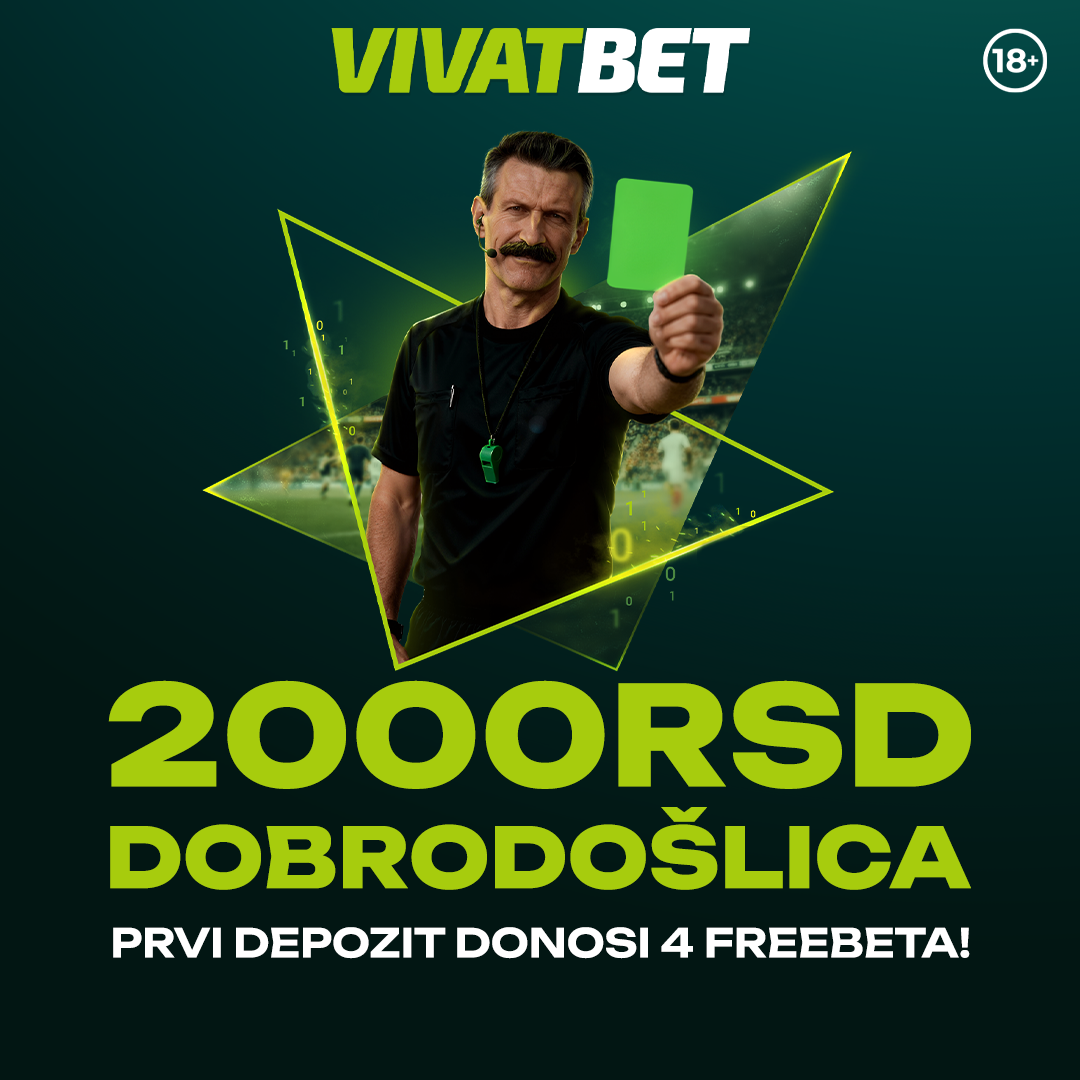 - Dostupno samo novim igračima - Registracija i verifikacija naloga obavezna - Uplata prvog depozita - Freebet se mora iskoristiti prema pravilima Vivatbeta - Freebet vrednost se koristi samo za opklade – dobici iz freebeta se isplaćuju, freebet sam po sebi se ne vraća